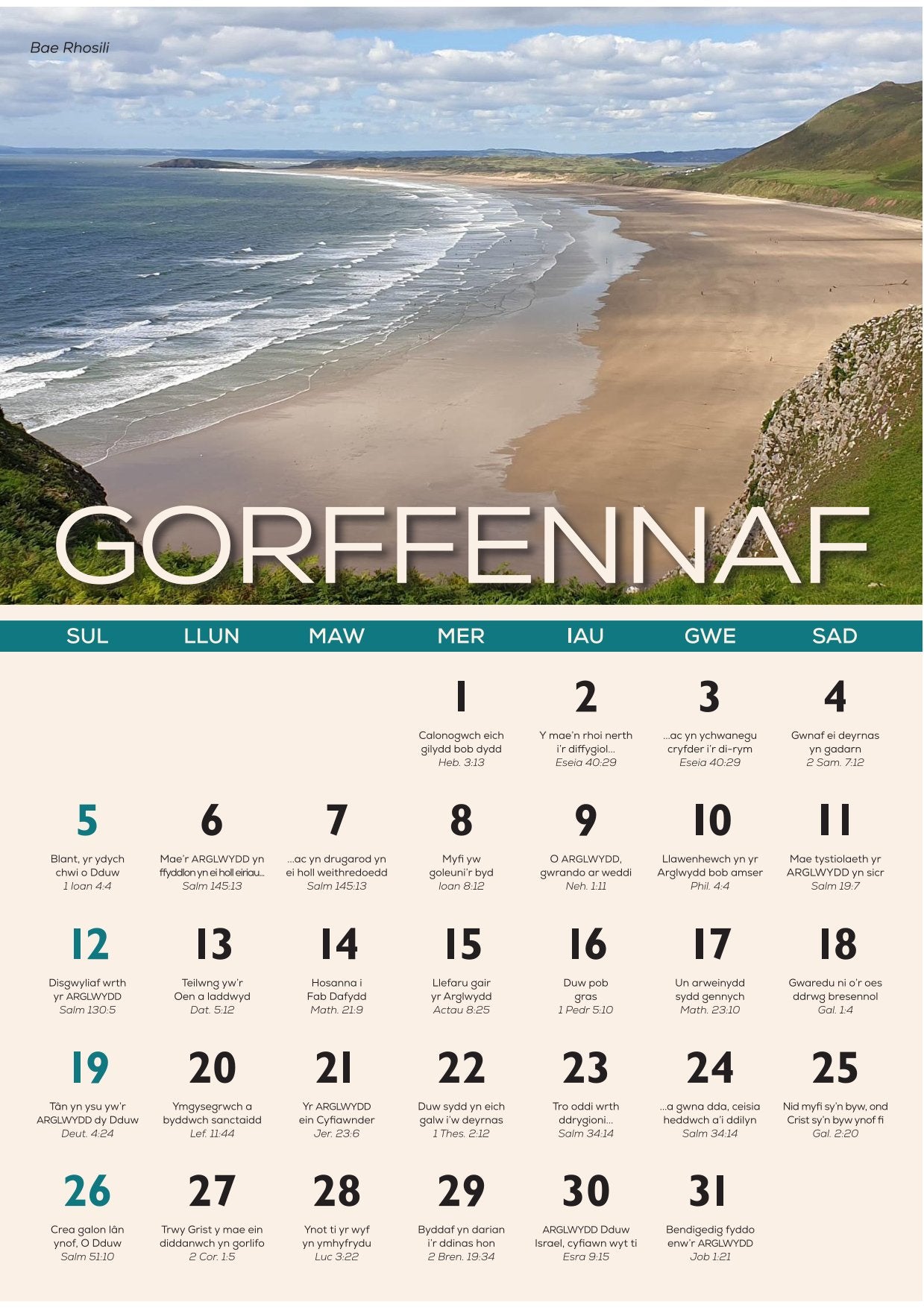 CALENDR HYFRYD GYDA LLUNIAU LLIW O OLYGFEYDD O BOB RHAN O GYMRU AC ADNOD DDYDDIOL.